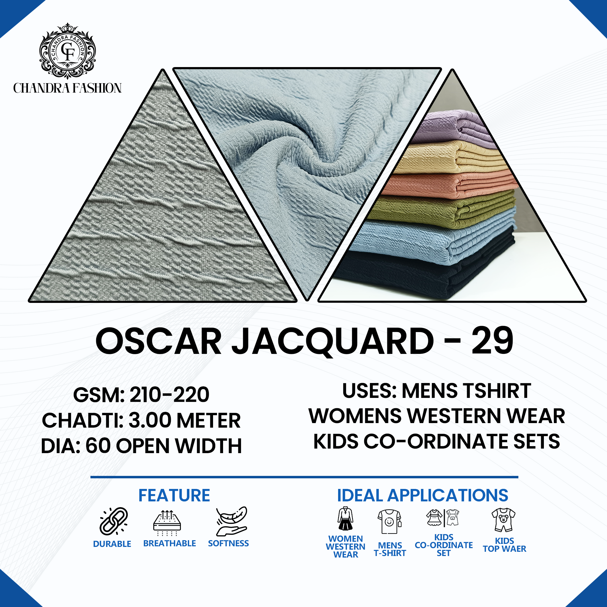 Top wear Fabric , T shirt Fabric , Bottom Wear Fabric , Lower Wear Fabric and Co-rd Sets Fabric