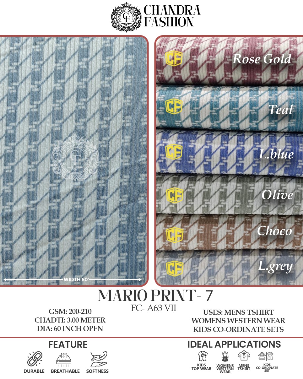 Top wear Fabric , T shirt Fabric , Bottom Wear Fabric , Lower Wear Fabric and Co-rd Sets Fabric