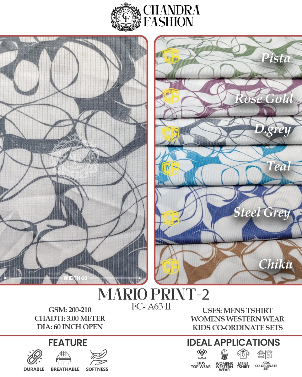 Top wear Fabric , T shirt Fabric , Bottom Wear Fabric , Lower Wear Fabric and Co-rd Sets Fabric