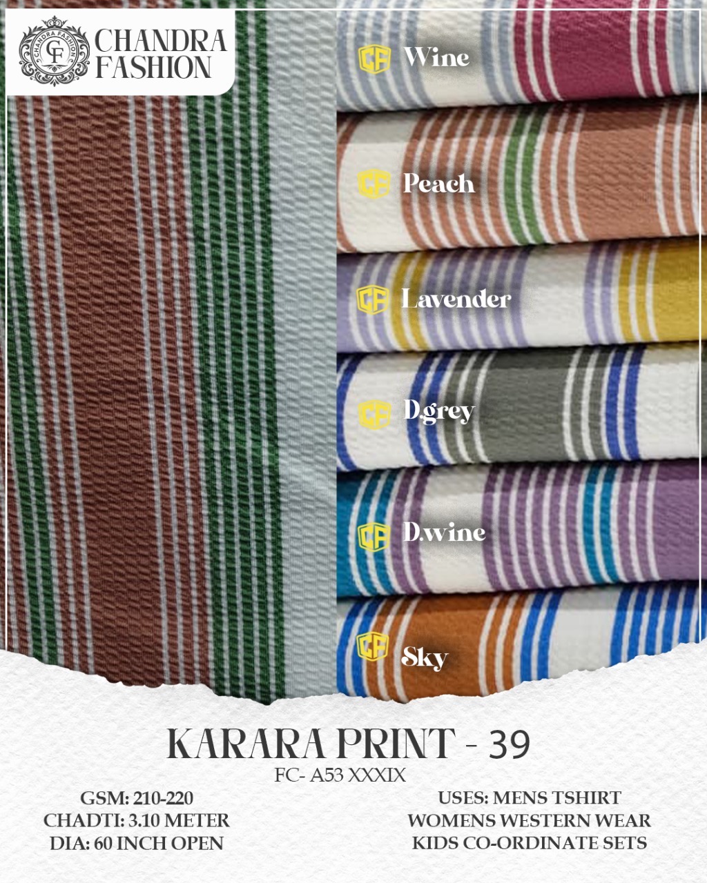 Top wear Fabric , T shirt Fabric , Bottom Wear Fabric , Lower Wear Fabric and Co-rd Sets Fabric