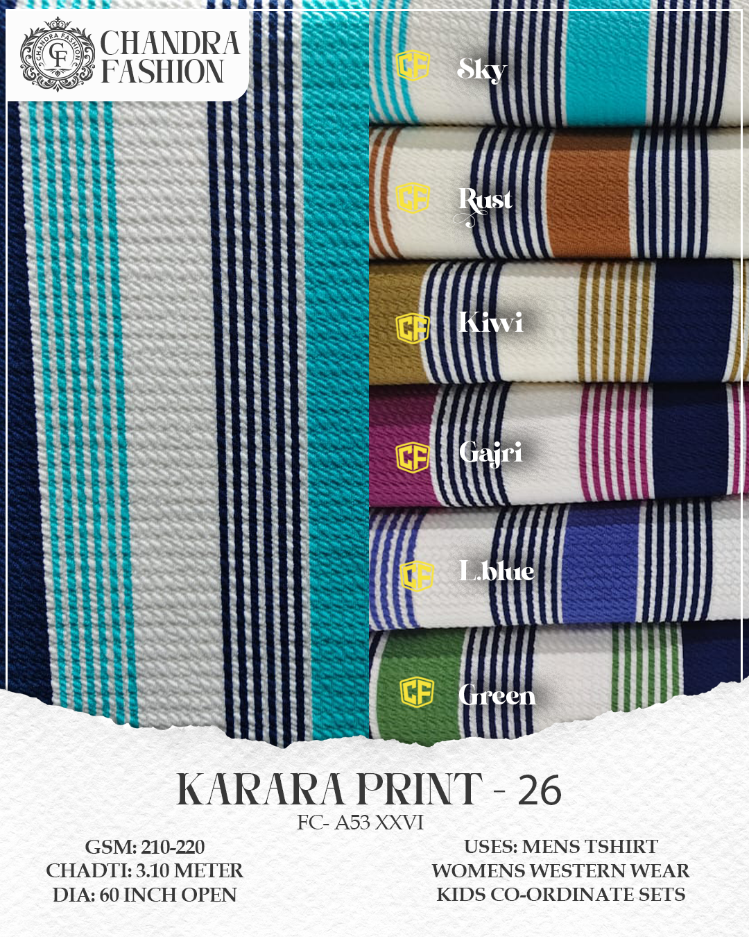 Top wear Fabric , T shirt Fabric , Bottom Wear Fabric , Lower Wear Fabric and Co-rd Sets Fabric