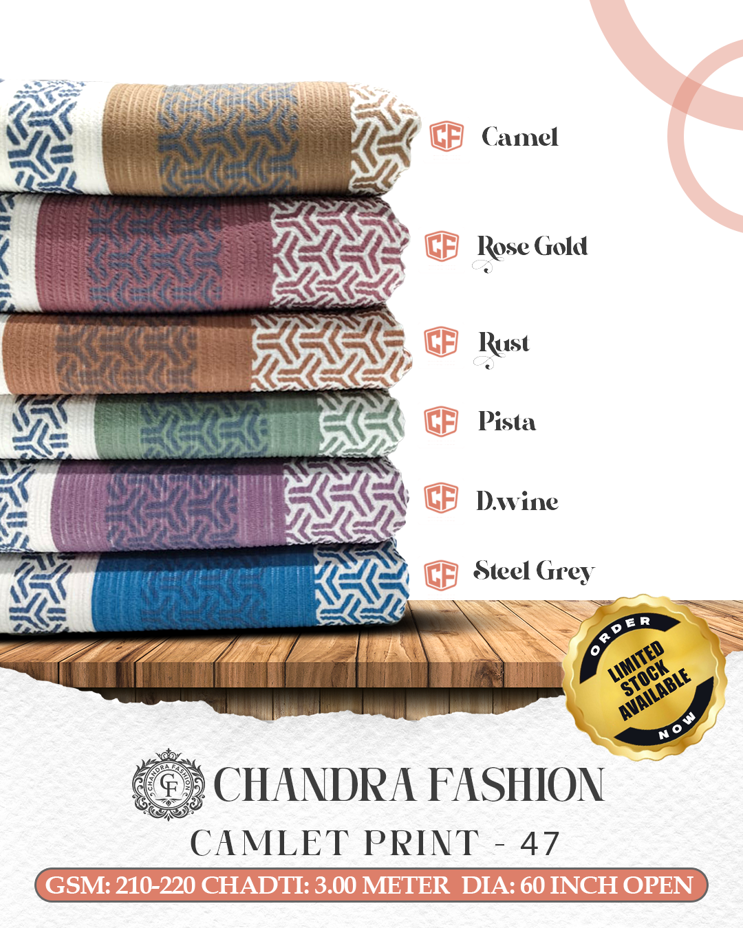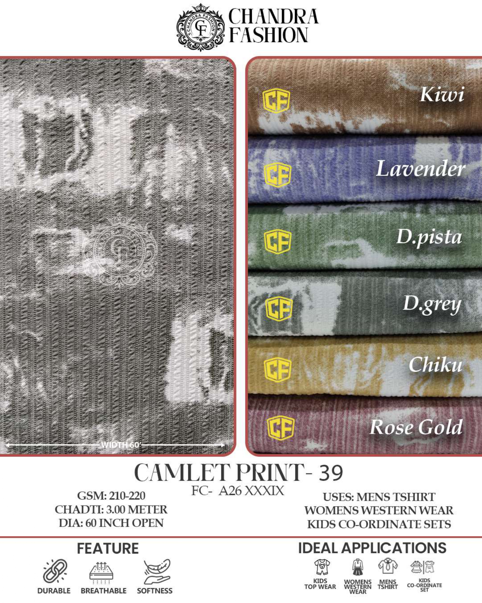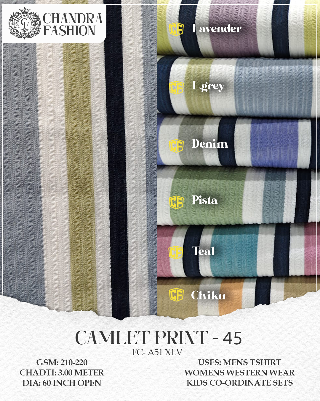 Top wear Fabric , T shirt Fabric , Bottom Wear Fabric , Lower Wear Fabric and Co-rd Sets Fabric