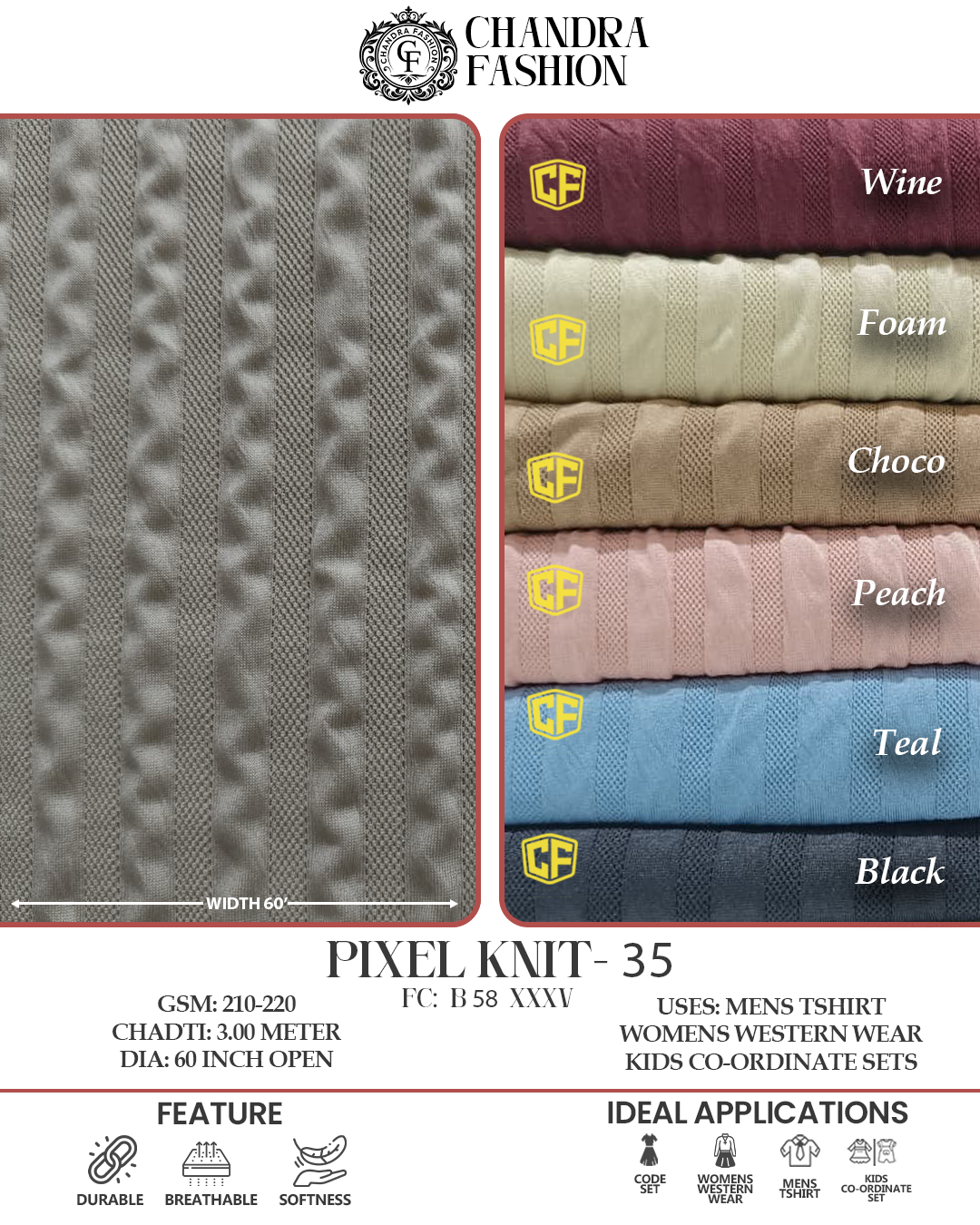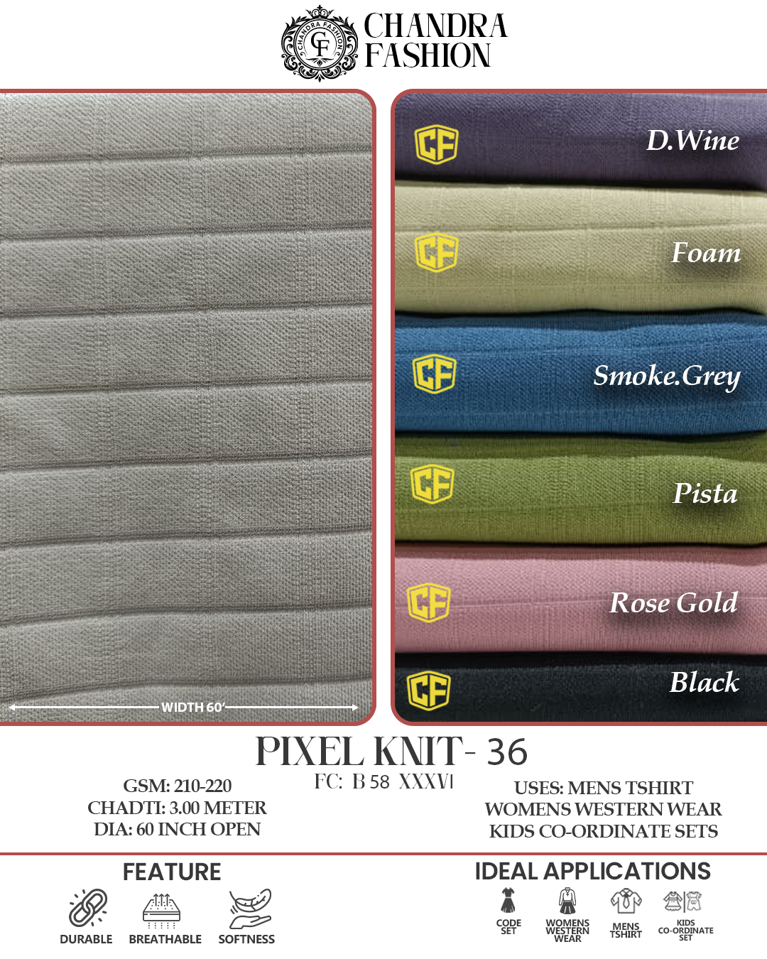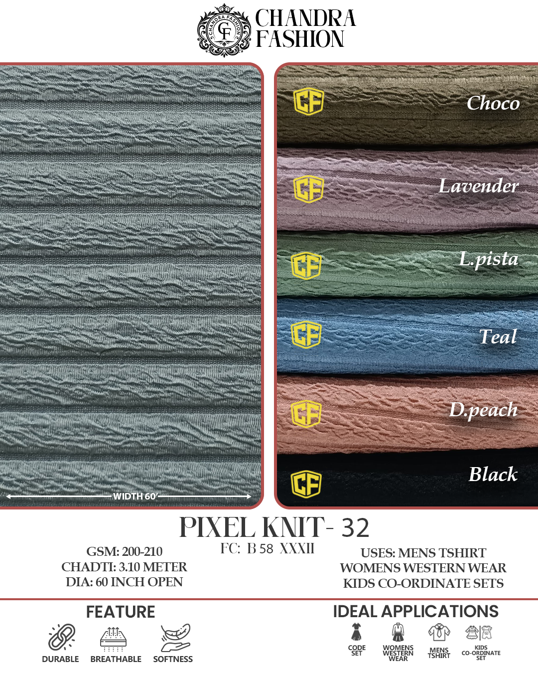 Top wear Fabric , T shirt Fabric , Bottom Wear Fabric , Lower Wear Fabric and Co-rd Sets Fabric