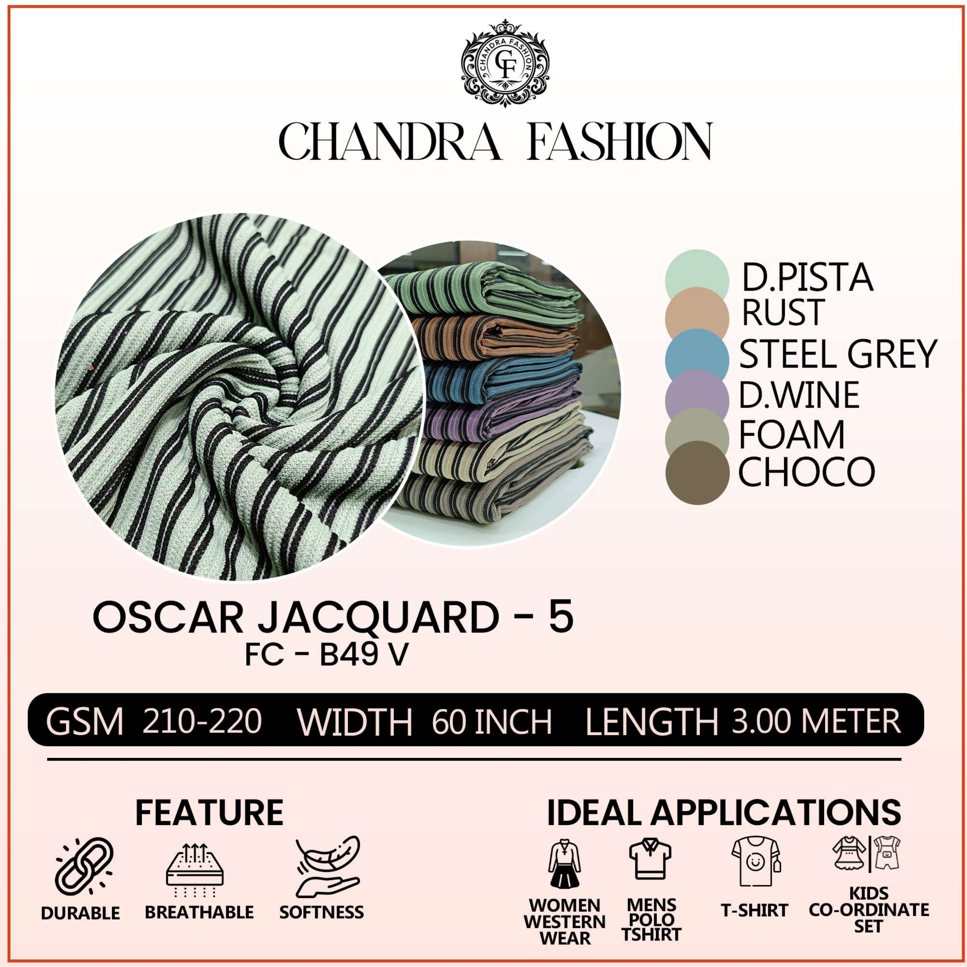 Top wear Fabric , T shirt Fabric , Bottom Wear Fabric , Lower Wear Fabric and Co-rd Sets Fabric